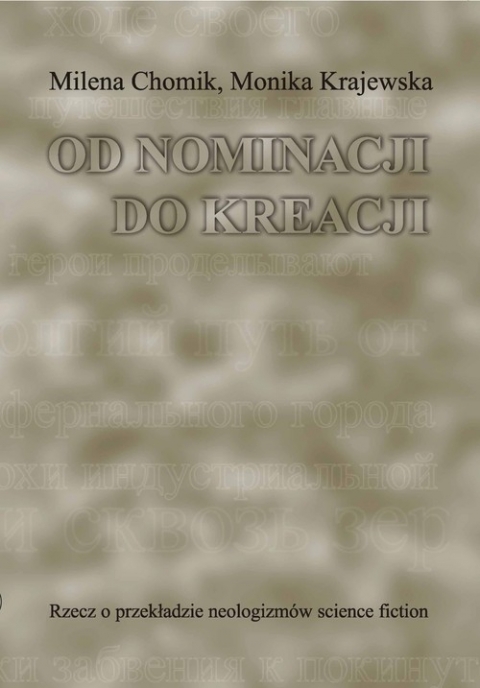 Książka Od nominacji do kreacji podejmuje zagadnienie przekładu neologizmów fantastyki naukowej na materiale groteski Stanisława Lema (Bajki robotów, Cyberiada, Dzienniki gwiazdowe) oraz twórczości Arkadego i Borysa Strugackich. Tytułowe od nominacji do kreacji, wskazując na cechy, jakie - naszym zdaniem - można przypisać neologizmom, opisuje jednocześnie dualizm dziedzictwa badawczego stanowiącego kontekst naszych obserwacji. Pierwszy nurt to tradycja badania nowych słów w fantastyce naukowej, skupiający się przede wszystkim na wskazywaniu takich naczelnych cech nowotworów, jak właśnie ich nominacyjność (nazywanie nowych obiektów wykreowanej rzeczywistości) i powiązane z nią odtwarzanie quasi-terminologicznego schematu leksykalnego oraz podporządkowana wymogom prawdopodobieństwa typowość językowa. Drugie podejście akcentuje natomiast to, co najczęściej widziane jest jako walor artystyczny neologizmu, a więc wyrażającą się w nim kreatywność, przełamywanie schematu oraz dążenie do odświeżania języka. W opisie przekładu neologizmów science fiction staramy się pogodzić obie te tradycje.