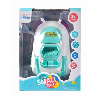 Zalety produktu: posiada efekty dźwiękowe oraz świetlne, podczas pracy powoduje wirowanie styropianowych kuleczek dołączonych do zestawu. Najwyższy czas na porządki. Pozwól dziecku pomóc Ci w podstawowych obowiązkach domowych np. odkurzaniu! Produkt ten idealnie odzwierciedla prawdziwy sprzęt domowy, wydając odgłosy odkurzania. Zawartość zestawu: odkurzacz, kulki styropianowe. Wymiary/waga/baterie: wymiary produktu (dł. x szer.x gł.) [cm]: 17x11x11, wymiary opakowania (dł. x wys. x gł.) [cm]: 17x23x12, waga produktu bez opakowania [kg]: 0,59 kg, waga produktu w opakowaniu [kg]: 0,77 kg, wymaga zasilania bateriami 3 x AA- nie załączono do zestawu. Przeznaczona dla dzieci w wieku: 3+.