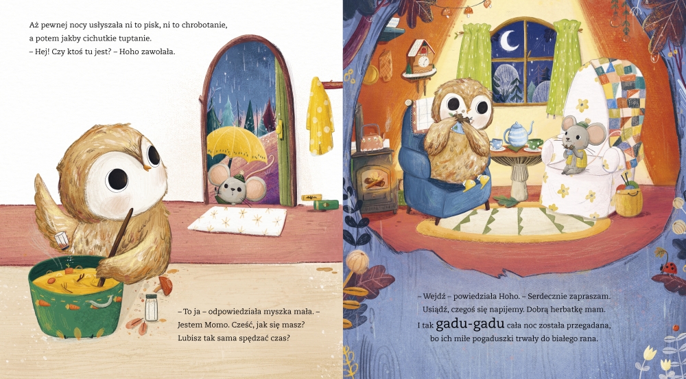 SÓWKA HOHO KOCHA SWÓJ DOM. Tylko tu czuje się bezpiecznie. Tu jest przytulnie i ciepło. A Hoho nie lubi ani deszczu, ani burzy. Boi się ciemności, bo tam może czaić się niebezpieczeństwo.