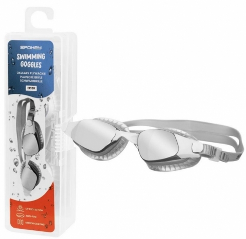 Okulary do pływania wykonane są z wytrzymałych materiałów. Wyposażone w system Antifog, dzięki któremu okularki nie parują, co zapewnia doskonałą jakość widzenia oraz w filtr przeciwsłoneczny UV, który chroni przed szkodliwym promieniowaniem. Dzięki miękkim, silikonowym uszczelkom, okulary optymalnie przylegają do twarzy, co zapobiega wpływaniu wody do środka okularów.