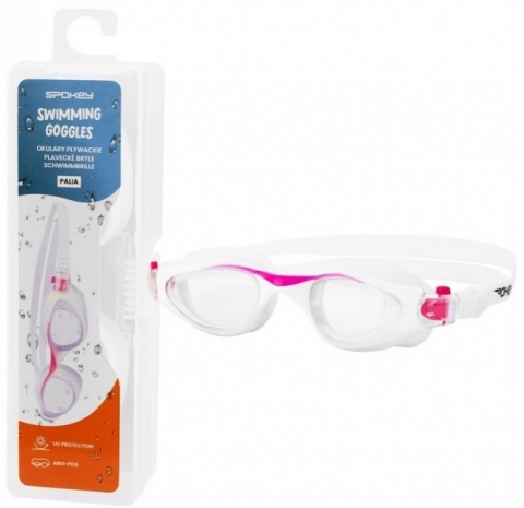 Okulary do pływania wykonane są z wytrzymałych materiałów. Wyposażone w system Antifog, dzięki któremu okularki nie parują, co zapewnia doskonałą jakość widzenia oraz w filtr przeciwsłoneczny UV, który chroni przed szkodliwym promieniowaniem. Dzięki miękkim, silikonowym uszczelkom, okulary optymalnie przylegają do twarzy, co zapobiega wpływaniu wody do środka okularów. Podwójny silikonowy pasek rozkłada naprężenia.