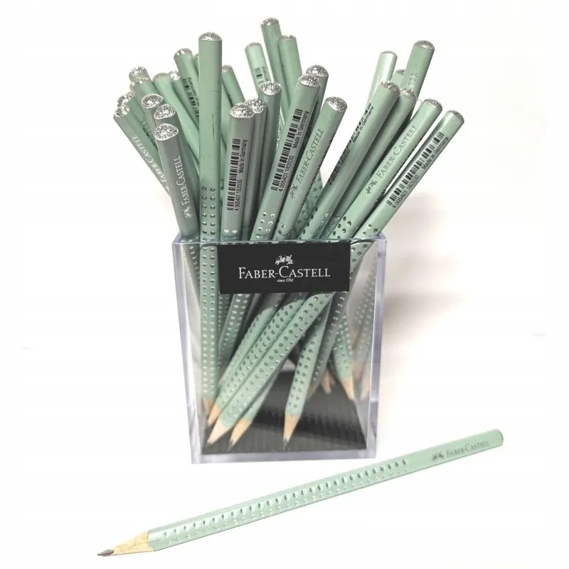 Ołówek ozdobiony z błyszczącymi punktami. Posiada ergonomiczny trójkątny przekrój. Twardość B.