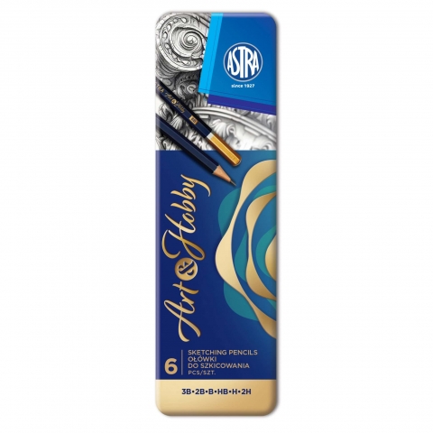 Ołówki do szkicowania Astra Art&Hobby, 6 sztuk w metalowym pudełku (206118001)