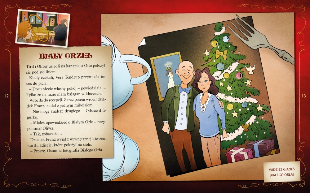 Pewnej dramatycznej nocy przed dziesięcioma laty jedną z osób nocujących w pensjonacie Górskie Zbocze obrabowano podczas snu, chociaż jej pokój był zamknięty od środka. Od tamtej pory nie widziano ani złodzieja, ani jego łupu – drogocennego naszyjnika. Ale w te święta gośćmi pensjonatu są detektywi z Biura Detektywistycznego nr 2. Przyłącz się do poszukiwań Białego Orła!
