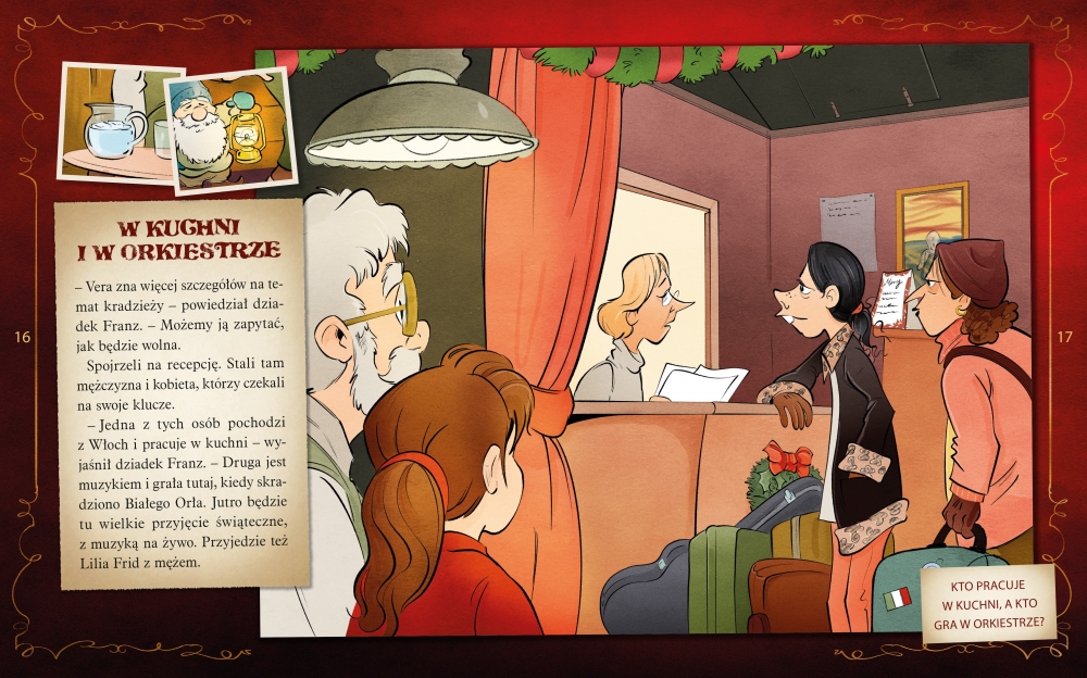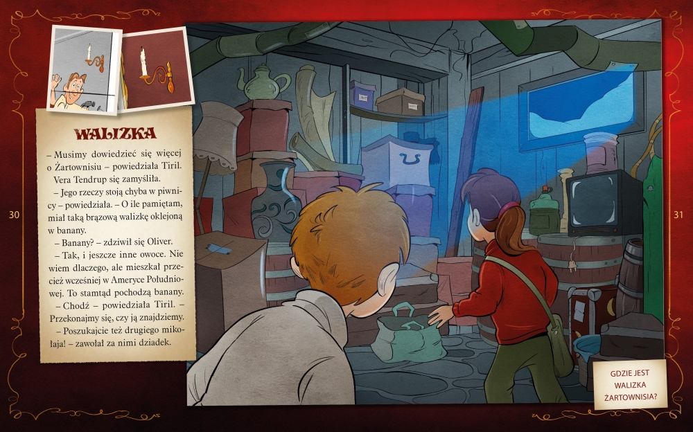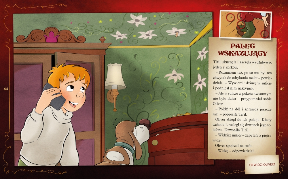 Podczas lektury musisz znajdować ślady, podążać za wskazówkami, łamać szyfry i rozwiązywać zadania. Trzeba mieć oczy szeroko otwarte! Rozwiązanie kryje się w tekście i na ilustracjach – oraz na następnej stronie.