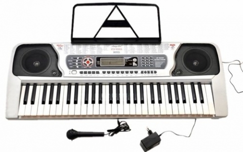 Keyboard MQ-810 Z MIKROFONEM I ZASILACZEMIstnieje możliwość zasilania go również za pomocą baterii - 6 sztuk R 6,W zestawie jest przewód zasilający i mikrofon,2 głośniki stereo - dwudrożny system głośników,Wyjście z tyłu keyboarda na mikrofon, głośnik oraz złącze USB,61 klawiszy, 10 rytmów muzycznych16 tonów muzycznych 8 klawiszy perkusyjnych/ 8 tonów - klawisze dwufunkcyjne6 melodii demonstracyjnychpłynna regulacja głośności regulacja głośnościregulacja tempa3 efekty dźwiękowe m.in.funkcja podłosufill innagrywanie i odgrywanie stopniowa kontrola tempa stereofoniczne głośniki,mikrofon i kabel zasilajacy w zestawie.wyświetlacz LED