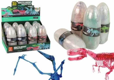 Wewnątrz znajduje się losowy model krystalicznego szkieletu dinozaura, którego składanie dostarcza dodatkowych atrakcji. To zabawka, która ćwiczy umiejętności motoryczne, koordynację ruchową i koncentrację.