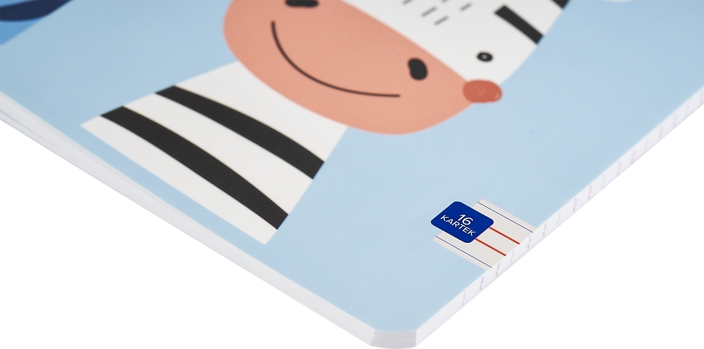 - Grzbiet zszywany zszywkami zapewnia trwałość zeszytów i wygodę pisania