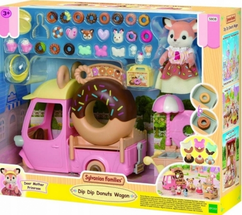 Zapraszamy na pyszne pączki! Pączkowy pojazd z wielkim okrągłym donutem na dachu pojawił się w krainie Sylvanian Families. Kiedy mama z rodziny Jelonków Primrose podjeżdża swoim pączkowym pojazdem, wszyscy miłośnicy słodkich wypieków ustawiają się w długiej kolejce. Wystarczy kilka ruchów i pojazd zmienia się w sklepik z pączkami. Wszystkie pączki są przygotowywane na miejscu i dekorowane zgodnie z zamówieniem każdego gościa. Zestaw zawiera mnóstwo pączków w różnych kształtach i ponad 30 akcesoriów. Mama Primrose ubrała się w uroczy strój przypominający słodkiego donuta z kolorową posypką. Pączkowy pojazd można przekształcić w niewielki autobus dla dzieci z krainy Sylvanian Families. Zestaw zawiera również wózek z miejscem do smażenia i dekorowania pączkowych smakołyków. Zabawki Sylvanian Families rozwijają wyobraźnię i zachęcają dzieci do zabawy w odgrywanie ról. Zabawa z figurkami Sylvanian Families rozwija kreatywność i uczy emocji poprzez tworzenie i opowiadanie historii na podstawie codziennych doświadczeń i obserwacji świata. Zabawki Sylvanian Families tworzy japońska firma Epoch od 1985 roku. Wyróżnia je najwyższa jakość oraz wyjątkowa dbałość o szczegóły. Figurki Sylvanian Families mają ruchome główki, rączki i nóżki. Polecamy od 3 roku życia.