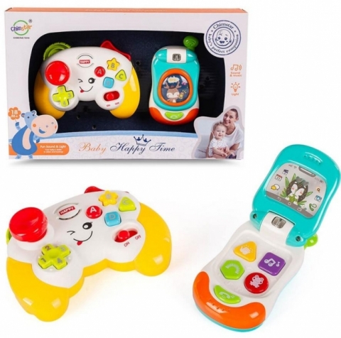 Zarówno telefonik jak i joystick posiada duże kolorowe przyciski, dzięki czemu maluch bez problemu będzie sobie mógł je przełączać. Zabawka posiada także efekty świetlne, które przykuwają uwagę dziecka. Zabawka posiada wgrane proste melodie oraz odgłosy zwierzątek.