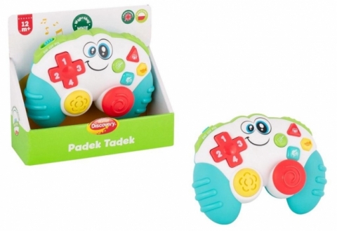 Dwujęzyczny Pad, który uczy dzieci kształtów i cyfr. Do wyboru mamy dwa języki: polski i angielski, a tryb zmienia się za pomocą przełącznika znajdującego się na górze zabawki (ENG-OFF-POL). Pad kryje w sobie także dźwięki instrumentów muzycznych