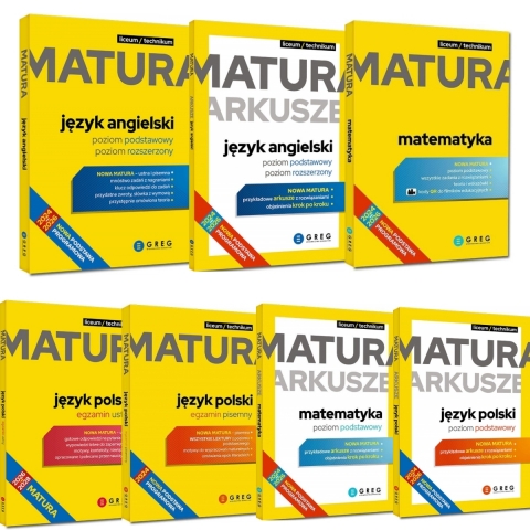 Pakiet 7 książek - repetytoria i arkusze maturalne Greg