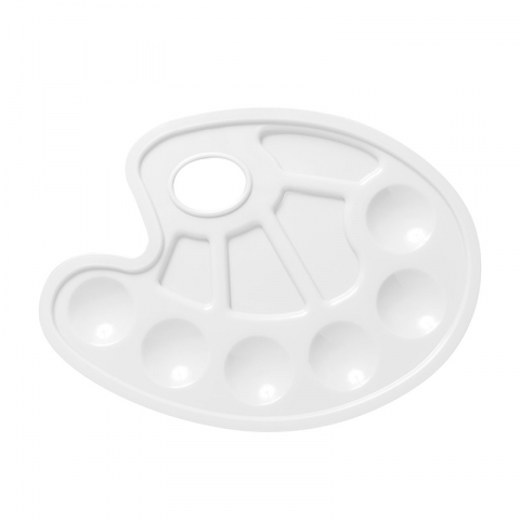 Paleta malarska wykonana z tworzywa. Jest przeznaczona do farb wodorozcieńczalnych. Posiada dziesięć płytkich pojemników na farby oraz otwór do trzymania.