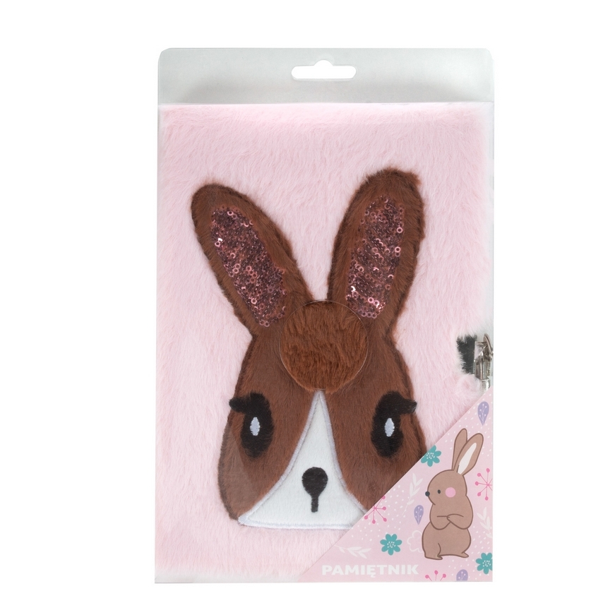 Pamiętnik pluszowy z kłódką różowy - Królik