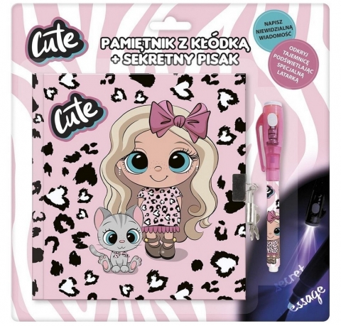 Zestaw składa się z pamiętnika wykonanego z laminowanej tektury zamykanego na kłódkę. Do zapisania jest ok 60 karteczek w linie.