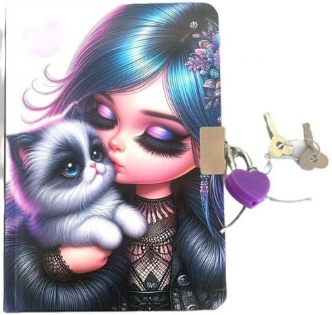 Pamiętnik z kłódką A6/64K gładki Dziewczynka z kot