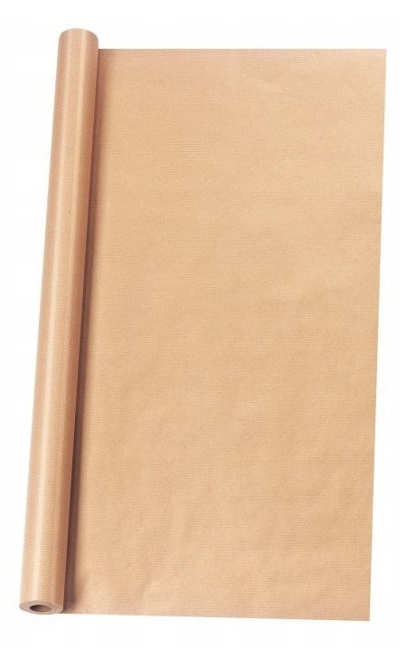 Papier pakowy w rolce w kolorze brązowym. Rolka zabezpieczona folią ochronną. Gramatura: 83 g/m2