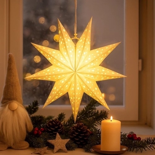 Papierowa gwiazda LED to elegancka dekoracja świetlna, która łączy prostotę formy z nastrojowym światłem.