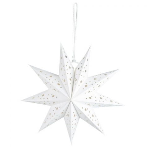 Wykonana w kolorze białym, o wielkości 35 cm, prezentuje się wyjątkowo elegancko i subtelnie. Dzięki wbudowanym lampkom LED stanowi piękną ozdobę okna, ściany czy stołu. Jej lekka ażurowa konstrukcja sprawia, że łatwo ją zawiesić, a ciepła barwa światła podkreśla świąteczny klimat.