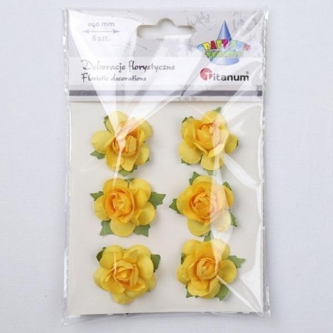 Papierowe róże na druciku O40mm żółte 6szt.