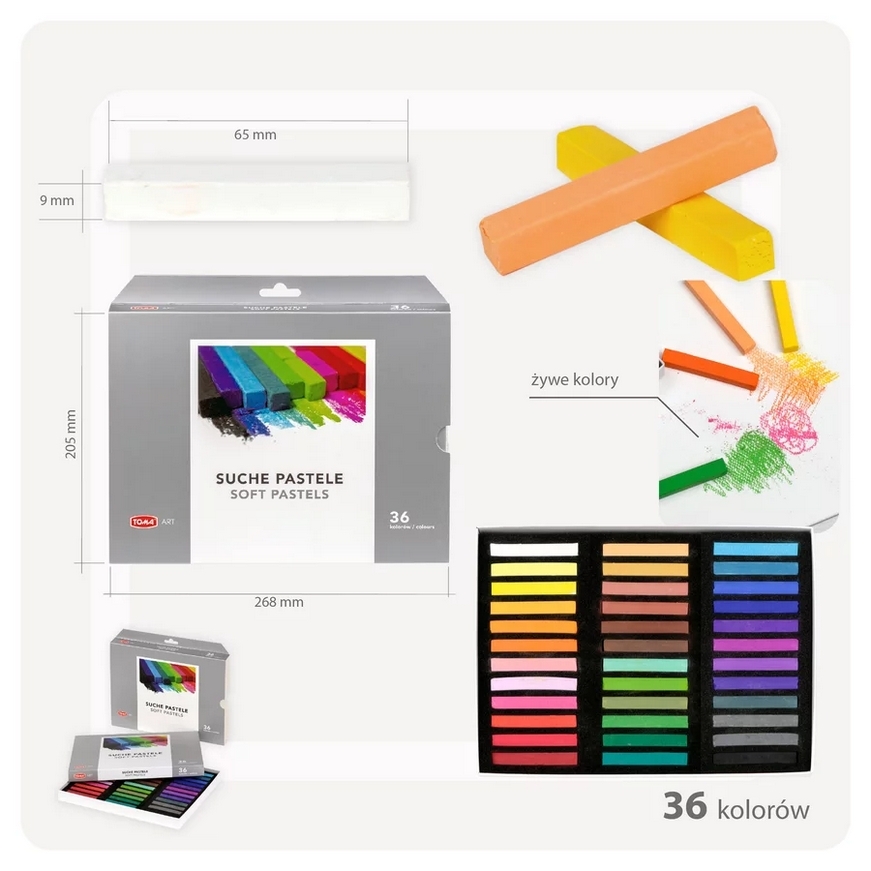 Pastele suche TOMA to idealne narzędzie dla każdego, kto ceni swobodę twórczej ekspresji i wyjątkową głębię barw. Doskonale sprawdzą się zarówno u początkujących artystów, jak i u doświadczonych plastyków poszukujących profesjonalnych efektów w swoich pracach.