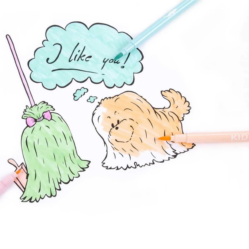 Końcówka w kształcie pędzelka sprawdzi się do kaligrafii, kolorowania dużych powierzchni, zdobienia kartek okolicznościowych i ozdób, natomiast druga strona flamastra gwarantuje możliwość precyzyjnego rysowania i kolorowania.