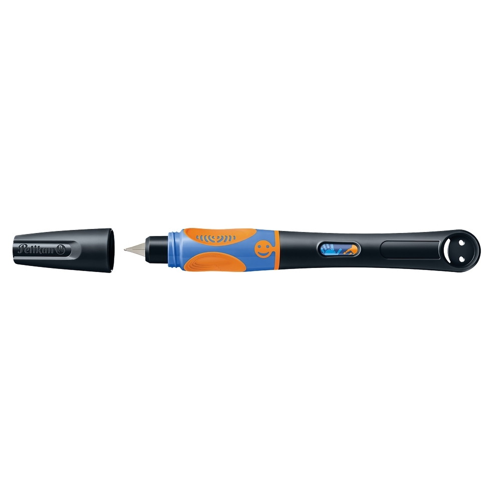 Pióro wieczne Pelikan Griffix to etap 4 i zarazem ostatni w 4-stopniowym systemie nauki pisania opracowanym przez markę Pelikan. Na tym poziomie dziecko posiada już rozwinięty chwyt szczypcowy, potrafi kreślić precyzyjne kształty i stosuje właściwy nacisk podczas pisania. Pióro zostało zaprojektowane z myślą o utrwalaniu tych umiejętności i wprowadzeniu dziecka w świat pisania piórem wiecznym – z pełnym komfortem i kontrolą. Stalówka ze stali nierdzewnej, częściowo schowana w obudowie, jest odporna na nacisk i nie wymaga wysiłku – gładko sunie po papierze, nie drapiąc i nie przerywając linii. Dziecko może też kontrolować ilość atramentu dzięki specjalnemu okienku w obudowie, a odkręcana nasadka zapobiega przypadkowemu pobrudzeniu dłoni i piórnika. Trójkątna, ergonomiczna i antypoślizgowa strefa chwytu oraz widoczna uśmiechnięta buźka pomagają dziecku w utrzymaniu właściwej pozycji palców i dalszym rozwijaniu umiejętności pisarskich.
