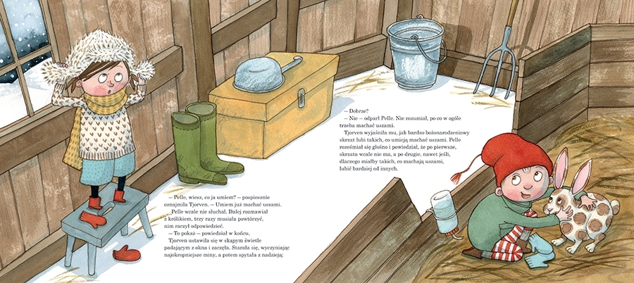 Jakże inna jest wyspa zimą! I jakaż tu panuje świąteczna atmosfera! Jednak Pelle ma zmartwienie – na wyspie grasuje lis i porywa kury. A jeśli porwie też jego królika? Pelle musi temu jakoś zapobiec!