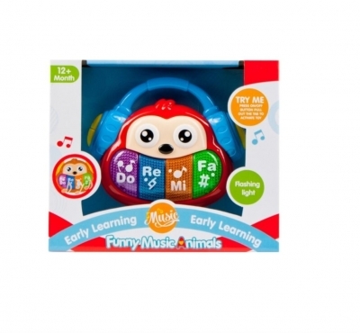 Zabawkowa małpka z przyciskami, wydająca dźwięki oraz sygnały świetlne. Idealna dla najmłodszych muzykantów.