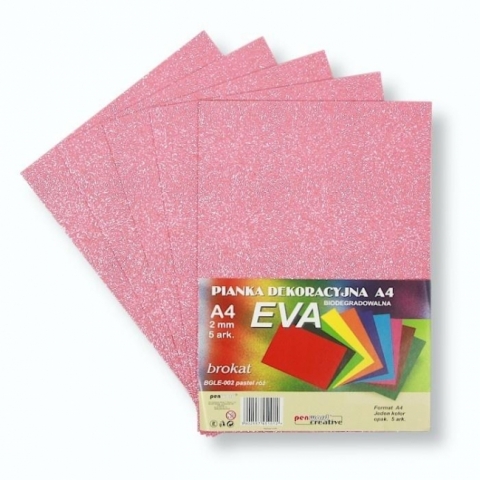 Pianka brokatowa A4 Eva pastelowy róż biodegradowalna 5szt