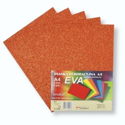 Pianka brokatowa A4 Eva pomarańczowa biodegradowalna 5szt
