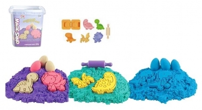 Piasek kinetyczny to magiczny piasek, który zachowuje się jak mokry piasek, lecz nigdy nie wysycha. Piasek doskonale daje się formować, a przy tym nie brudzi rąk, ubrań, a także podłoża, na którym się znajduje. Piasek kinetyczny jest idealną zabawką rozwijająca umysł dziecka! Pobudza wyobraźnię i zachęca do tworzenia własnych nowych kształtów, w czym mogą pomóc foremki dołączone do zestawu. W zestawie znajdują się 2 kolory piasku oraz foremki i wałek.