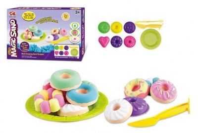 Piasek kinetyczny to magiczny piasek, który zachowuje się jak mokry piasek, lecz nigdy nie wysycha. Piasek doskonale daje się formować, a przy tym nie brudzi rąk, ubrań, a także podłoża, na którym się znajduje. Piasek kinetyczny jest idealną zabawką rozwijająca umysł dziecka! Pobudza wyobraźnię i zachęca do tworzenia własnych nowych kształtów, w czym mogą pomóc foremki dołączone do zestawu. W zestawie znajdują się 2 kolory piasku oraz foremki, talerzyk i nóż.