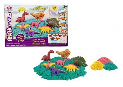 Zestaw kolorowy piasek kinetyczny z figurkami dinozaurów do tworzenia rzeźb i zabawy. W zestawie znajduje się piasek w różnych kolorach oraz figurki dinozaurów. Zabawka przeznaczona dla dzieci od lat 3. Zapakowana w kartonowe pudełko. Podane wymiary są wymiarami opakowania.