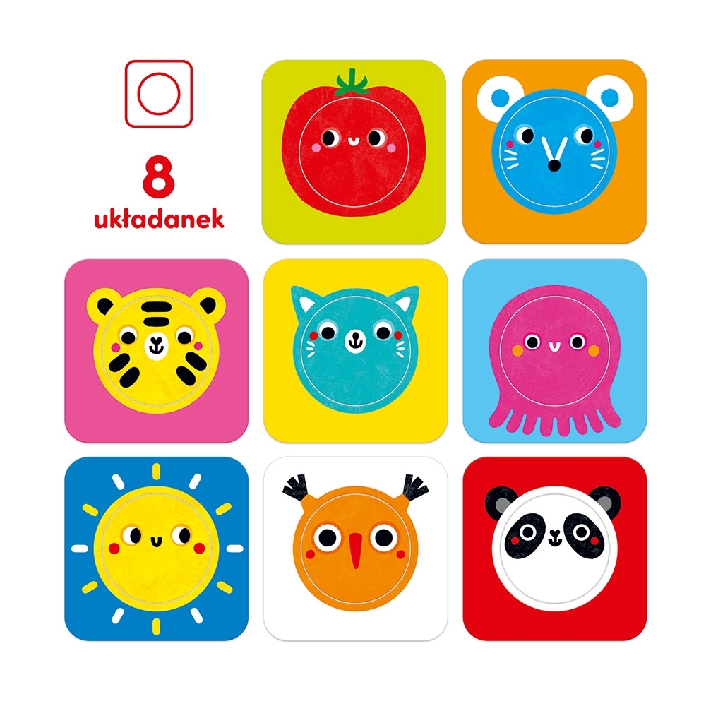 Oto doskonały pomysł na pierwsze puzzle już dla rocznych dzieci. Edukacyjny zestaw dla najmłodszych składa się z 8 dużych tabliczek z dokładanymi kółeczkami. Zabawa polega właśnie na ich dopasowywaniu, choć można je dokładać tył na przód, pod różny kątem, pomiędzy tabliczkami, a każde dopasowanie to powód do radości. Kolorowe, wyraźne ilustracje i formę układanek dopasowaliśmy do wieku ciekawych świata maluchów.