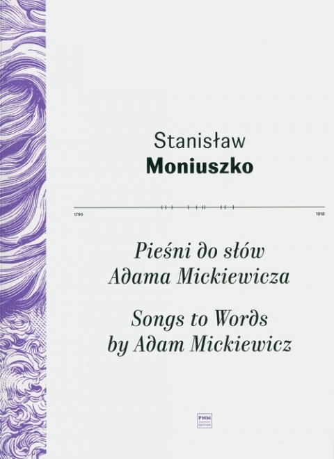 Pieśni Stanisława Moniuszki do słów Adama Mickiewicza - piękna poezja połączona z piękną muzyką.Utwory w publikacji:AniołekCzatyDo NiemnaDuettino "Na głowie ma kraśny wianek"Duettino "Naprzód ciebie wspomina"ImprowizacjaNiepewnośćPanicz i dziewczynaPieszczotkaPieśń pustelnikaPieśń z wieżyPowrót tatyRozmowa [I]Rozmowa [II]RybkaSenŚwiteziankaTrioletTrzech BudrysówWilijaZnaszli ten kraj [I]Znaszli ten kraj [II]Zosia