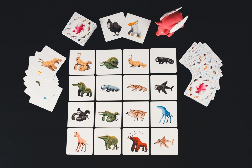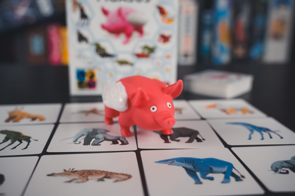 Pigasus to szybka, zabawna gra rodzinna i imprezowa, w której gracze muszą wykazać się refleksem i spostrzegawczością.