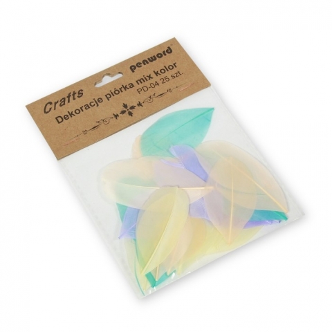 Dekoracyjne piórka w pastelowych kolorach zapakowane w woreczek. Nadają się doskonale do: