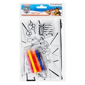 Przedstawiony piórnik spodoba się wszystkim fanom „Psiego Patrolu”. Ma jedną komorę zamykaną na zamek błyskawiczny. Do zestawu dołączono pisaki, za pomocą których dzieci mogą pomalować piórnik.