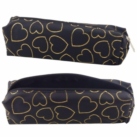 PIÓRNIK CZARNY W ZŁOTE SERDUSZKA Piórnik czarny w złote serduszka to stylowy i praktyczny dodatek, który idealnie sprawdzi się w szkole, na uczelni oraz w biurze. Jego kompaktowy format i lekka konstrukcja czynią go doskonałym wyborem do przechowywania najpotrzebniejszych przyborów piśmienniczych - takich jak długopisy, ołówki, cienkopisy czy zakreślacze. Dzięki swoim wymiarom z łatwością mieści się w plecaku, torebce lub torbie na laptopa, nie zajmując przy tym dużo miejsca. Miękka forma piórnika sprawia, że jest on wyjątkowo elastyczny i wygodny w codziennym użytkowaniu. W całości wykonany z wytrzymałego materiału, który dobrze znosi intensywne użytkowanie i jest odporny na przetarcia. Zamykanie na solidny zamek błyskawiczny pozwala bezpiecznie przechowywać zawartość i zapobiega jej wypadaniu, a jednocześnie umożliwia szybki dostęp do środka. SPECYFIKACJA: Wzór: złote serca Kolor dominujący: czarny Rodzaj piórnika: miękki, prostokątny Materiał: tworzywo sztuczne / tekstylne z połyskiem Elementy dekoracyjne: nadruk w kształcie serc, złoty kontur Zamykanie: zamek błyskawiczny Liczba komór: 1 Wnętrze: bez przegródek Wymiary: 20 x 6,5 x 4,5 cm ZAWARTOŚĆ ZESTAWU: Piórnik czarny w złote serca