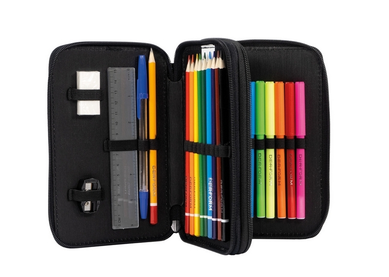 Dwukomorowy piórnik BackUP z wyposażeniem posiada: