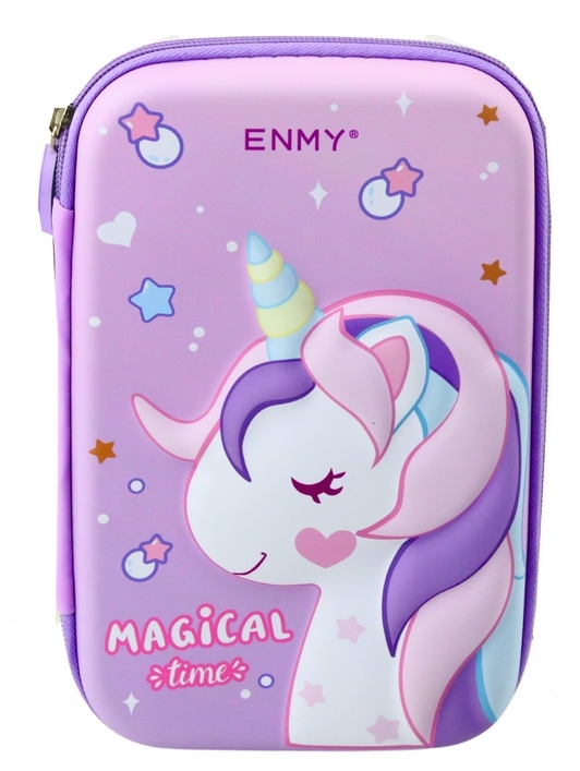 Duży Piórnik Z Jednorożcem Rozkładany 3D Fioletowy 23x15x5 cm
