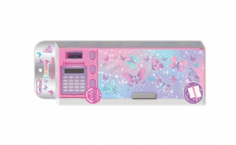 Nietypowy wielofunkcyjny piórnik z akcesoriami! Każdy przycisk otwiera nową przegródkę do schowania różnych drobiazgów. Piórnik zawiera dwie zamykane komory na przybory szkolne, jedną szufladkę, 1 mini-pojemnik, wysuwany podstawowy kalkulator, wysuwaną temperówkę. Wiek: 5+