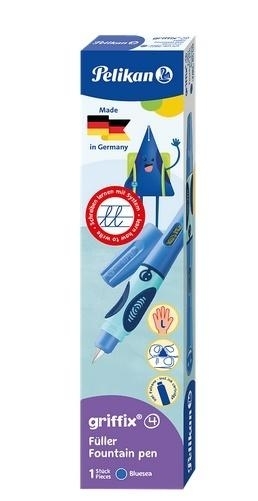 Pióro wieczne Pelikan Griffix to etap 4 i zarazem ostatni w 4-stopniowym systemie nauki pisania opracowanym przez markę Pelikan. Na tym poziomie dziecko posiada już rozwinięty chwyt szczypcowy, potrafi kreślić precyzyjne kształty i stosuje właściwy nacisk podczas pisania. Pióro zostało zaprojektowane z myślą o utrwalaniu tych umiejętności i wprowadzeniu dziecka w świat pisania piórem wiecznym z pełnym komfortem i kontrolą. Stalówka ze stali nierdzewnej, częściowo schowana w obudowie, jest odporna na nacisk i nie wymaga wysiłku gładko sunie po papierze, nie drapiąc i nie przerywając linii. Dziecko może też kontrolować ilość atramentu dzięki specjalnemu okienku w obudowie, a odkręcana nasadka zapobiega przypadkowemu pobrudzeniu dłoni i piórnika. Trójkątna, ergonomiczna i antypoślizgowa strefa chwytu oraz widoczna uśmiechnięta buźka pomagają dziecku w utrzymaniu właściwej pozycji palców i dalszym rozwijaniu umiejętności pisarskich.