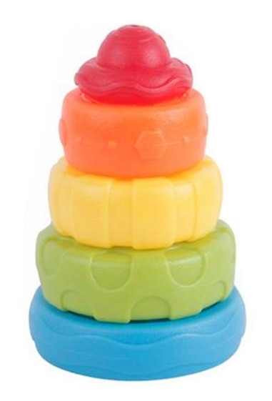 Plastikowa piramidka do sortowania i układania. Poszczególne części piramidki posiadają inne wypustki co oddziałuje u dzieci na zmysł dotyku, natomiast kolorowe elementy oddziałują na zmysł wzroku. Piramidka rozwija u dzieci także logiczne myślenie. Produkt dla dzieci powyżej 6 miesiąca życia. Produkt zapakowany w worek z siateczki.# Podane wymiary są wymiarami produktu w opakowaniu.