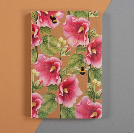 - Ekskluzywny planer bezdatowy z grafiką w kwiaty malwy i ozdobnym tłoczeniem.