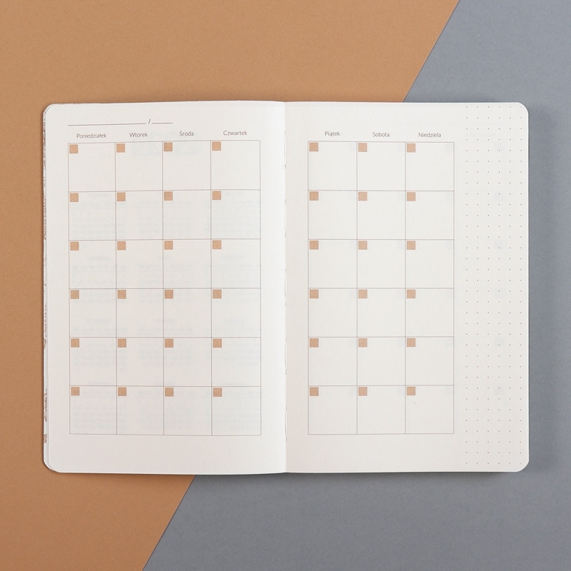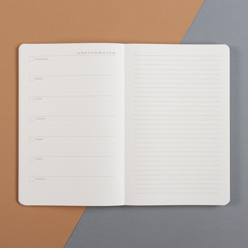 - Dzięki wykorzystaniu lekkiego, kremowego papieru, planer nie obciąży codziennego bagażu.