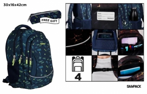 Plecak czterokomorowy 30x16x42cm + piórnik