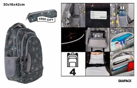 Plecak czterokomorowy 30x16x42cm + piórnik