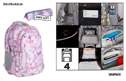 Plecak czterokomorowy 30x16x42cm + piórnik